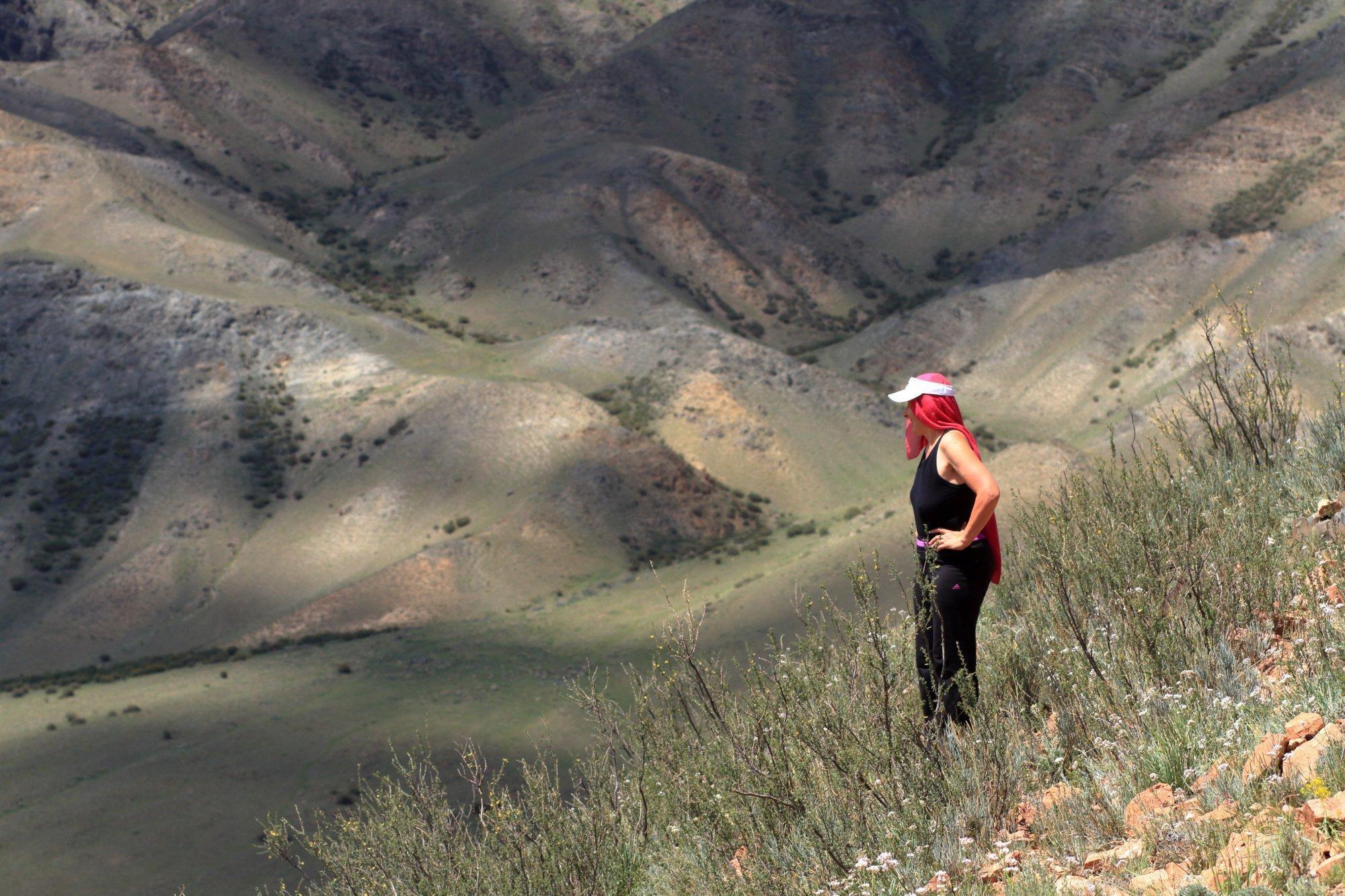 Pot nas tako počasi pripelje na greben, od koder se vijejo nepredstavljivi pogledi. Pokrajina “tam spodaj” se zdi kot iz kakšnega pustolovskega filma o izgubljenem svetu. Kontrasti tako v barvah kot oblikah. Le za malenkost obrnem pogled in že bujno zelenje prehaja v puščavski svet. Ravna planota v gričevje, ki je tako nevsakdanje oblike, kot bi ga narezal kakšen velikan. Vse skupaj pa začini globok kanjon, ki je odprl domišljiji prosto pot.